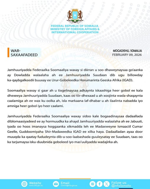 News in Somali Madaxweyne Xasan Sheekh Maxamuud oo cambaareeyay faragelinta Israa’iil iyo aqoonsiga Somaliland dalbileFebruary 8, 2026