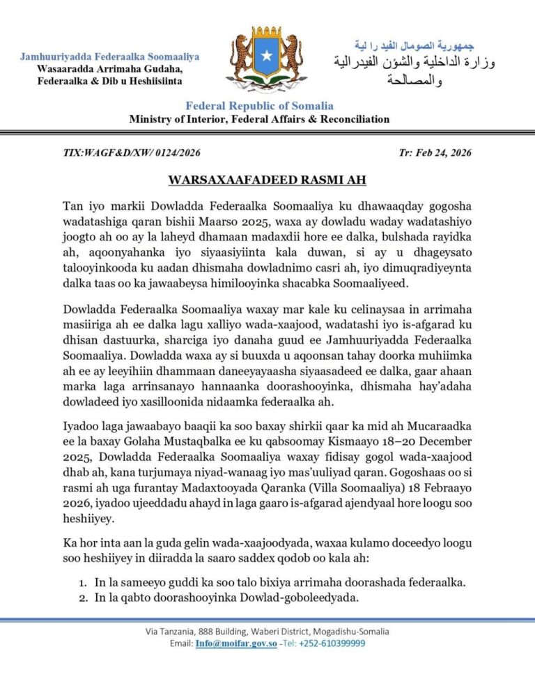 Deputy Minister Mohamed Cusmaan Jaamac expressed gratitude to the Kingdom of Saudi Arabia for the donation, which was coordinated with the national organization Tadamun Social Society. He called for increased humanitarian support to help drought-affected populations and emphasized the need for sustainable solutions to mitigate the impact of the ongoing crisis.